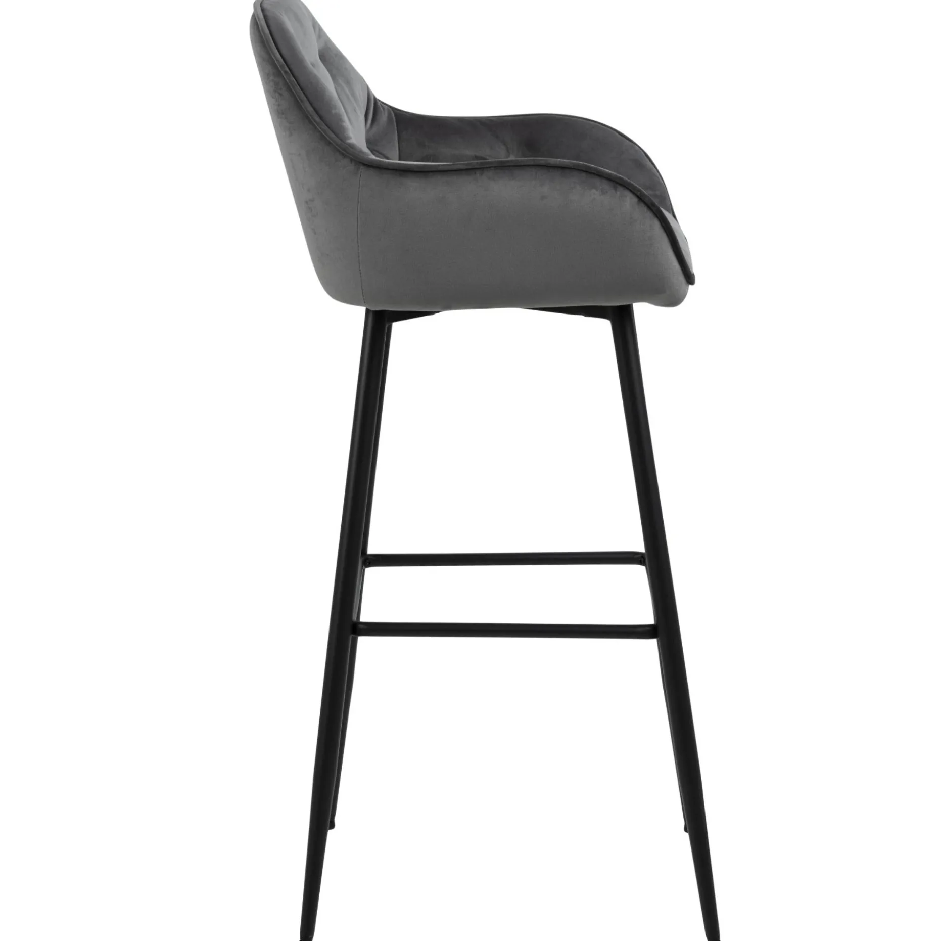Vores Mario barstol er en vores bestsellere og ønsker du en sammenhængende stil i dit hjem, findes der en matchende spisestol, så du kan fuldende din indretning. Velour er en af tidens store boligtrends og den trend rammer vores Mario barstol ind i. Det er en unik, rummelig og flot barstol beklædt i blød velour og med en god høj ryg og behagelige armlæn. Stolen er polstret, hvilket giver en god og behagelig siddekomfort og man kan derfor sidde i stolen i mange timer.