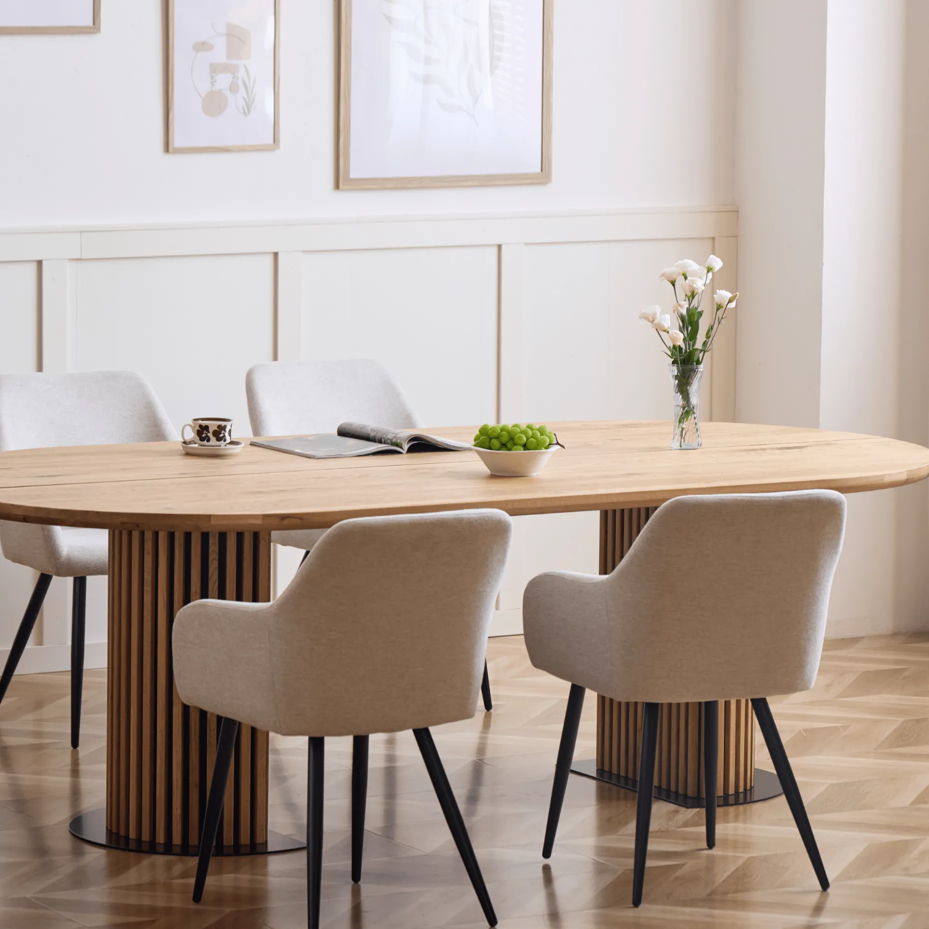 Matteo – Plankebord med lamelfod i olieret/natur massiv eg 240x120x77 cm