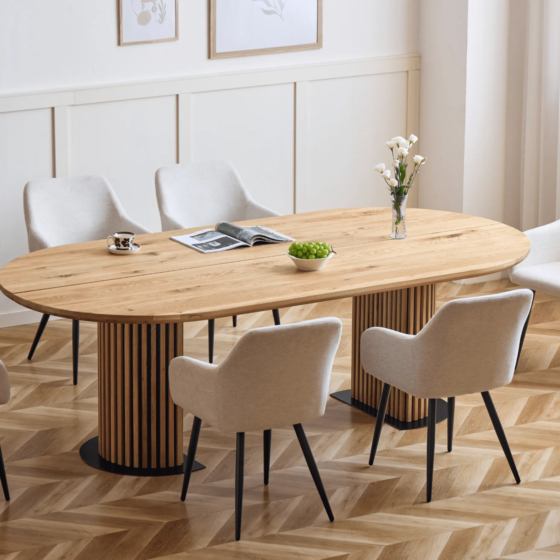 Matteo - Plankebord med lamelfod i olieret/natur massiv eg 240x120x77 cm