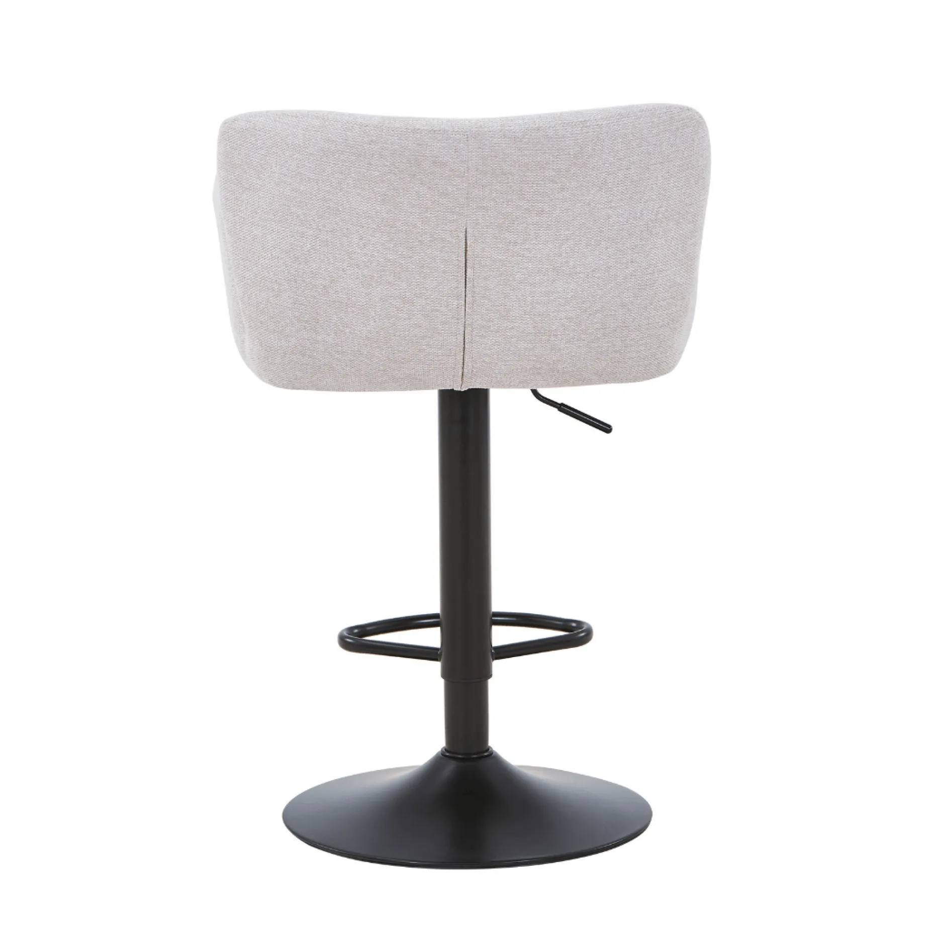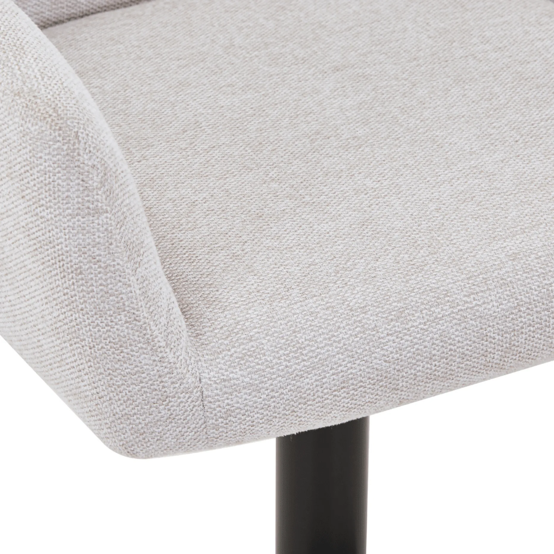 Melody barstol i beige tekstil har et stilrent og moderne design, der kombinerer komfort og funktionalitet. Den polstrede sædehynde og de afrundede armlæn giver optimal støtte, mens den justerbare højde og fodstøtte sikrer en behagelig siddeoplevelse. Med en sort metalbase tilføjer stolen et elegant og tidløst udtryk, perfekt til køkkenøen eller hjemmebaren.