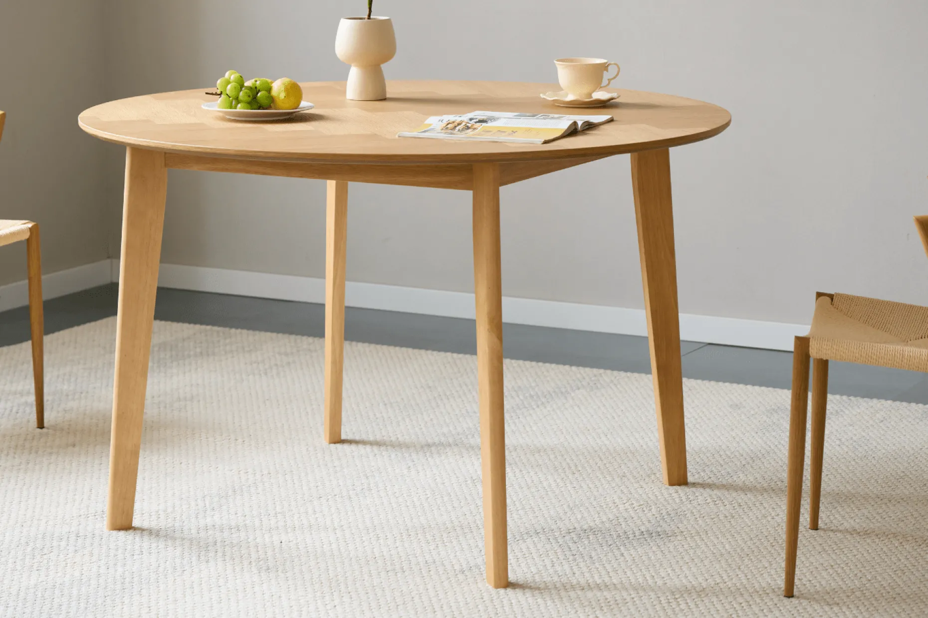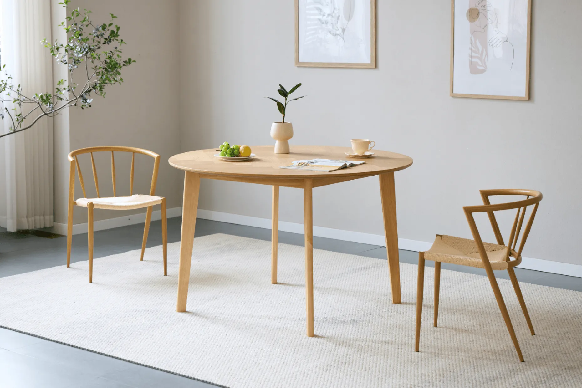 Det runde design skaber en naturlig samlingsplads i hjemmet, og bordet fås i to flotte varianter – røget egefiner og lys egefiner – så du kan vælge den tone, der passer bedst ind i din indretning.