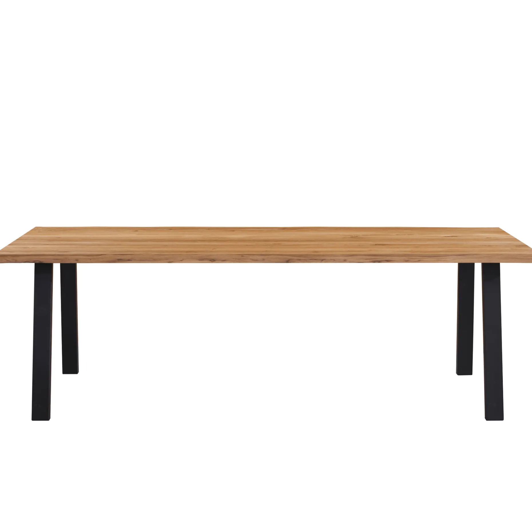 Dette Molly spisebord med 2 planker og sorte A-ben i metal måler 240 cm i længden, hvilket giver plads til at have 3 stole stående på hver side.