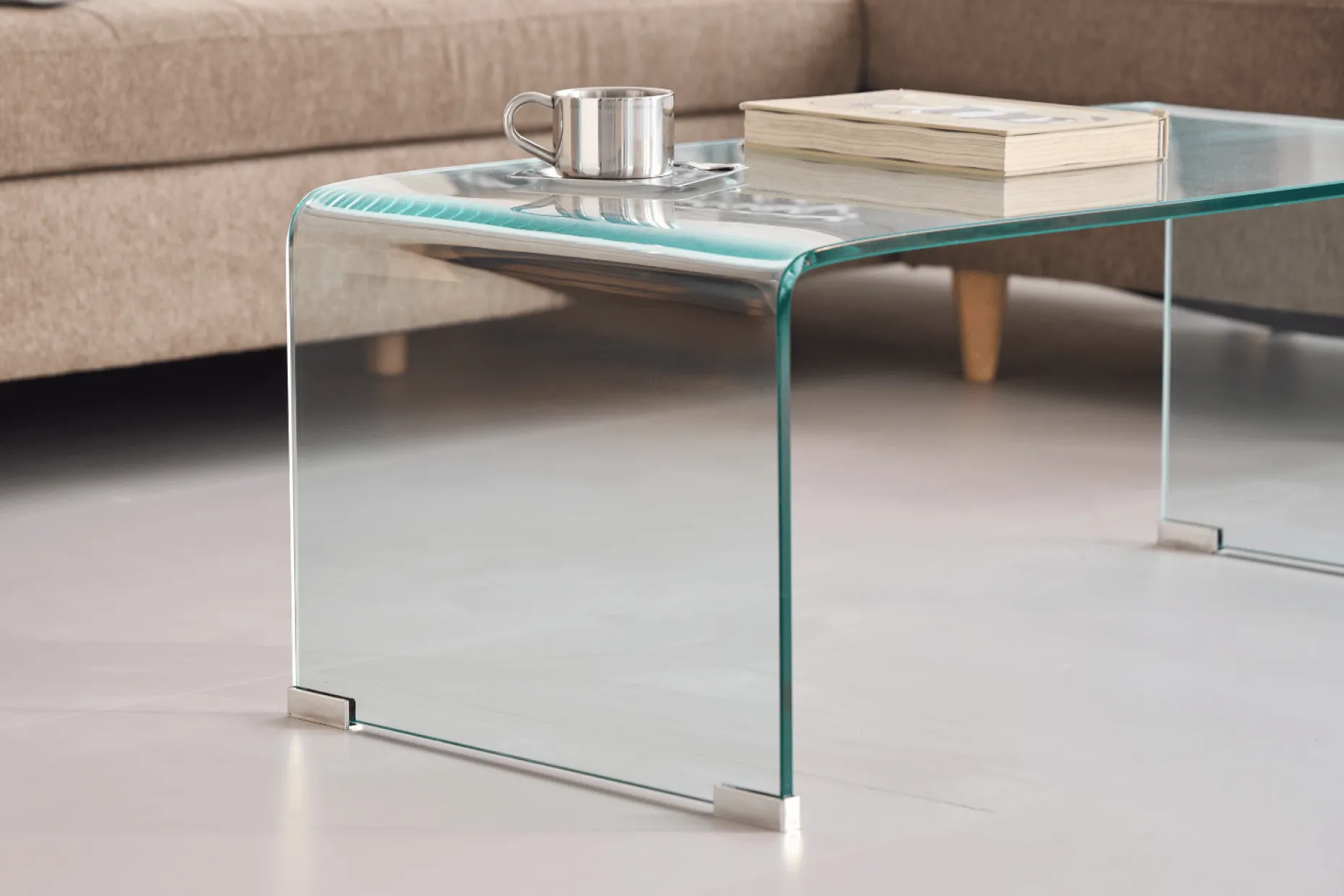 Dette rektangulære sofabord i klart glas er et tidløst valg til den moderne bolig. Bordet er 13 mm tyk og fremstillet af hærdet glas, som er mere modstandsdygtig overfor ridser og temperaturændringer. Det er designet med afrundede hjørner og rene linjer, som giver et let og harmonisk udtryk. Bordet har små beskyttere i krom på fødderne, der både tilfører et stilrent design og beskytter dit gulv mod ridser.