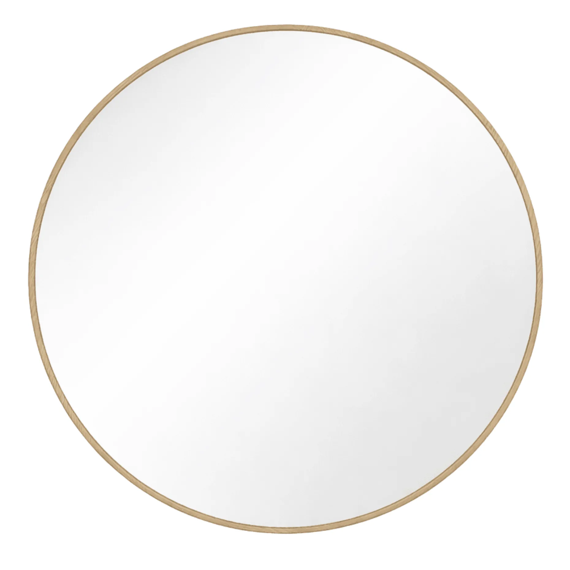 Rundt spejl med træramme i eg