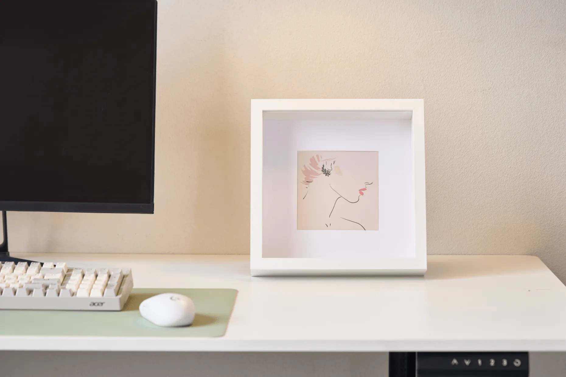 Salma kan hænges både lodret og vandret og kan samtidig stå frit på en hylde eller et bord. Den er ideel til de fleste rum, herunder soveværelset, stuen, kontoret og andre steder, hvor du ønsker at tilføje et dekorativt element. Denne ramme giver dig mulighed for at skabe unikke, tredimensionelle displays, der skiller sig ud i din boligindretning.