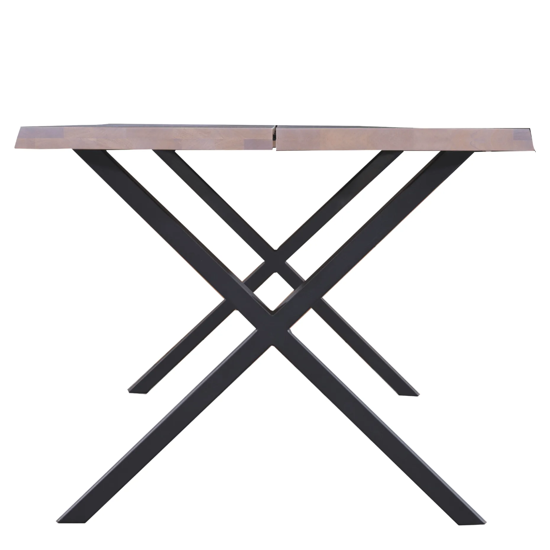 Dette Susan spisebord med 2 planker og sorte krydsben i metal måler 200 cm i længden, hvilket giver plads til at have 3 stole stående på hver side.
